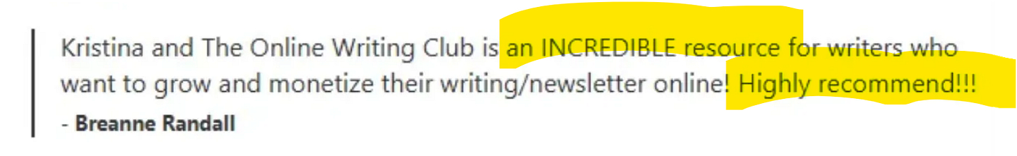That’s why the Online Writing Club is a Substack Bestseller.