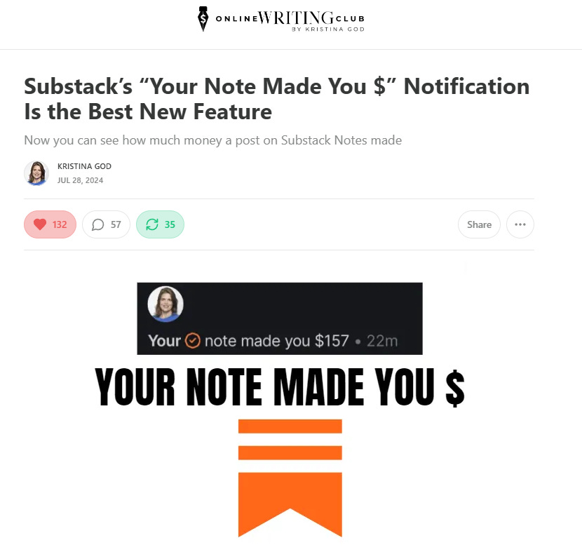 When Substack introduced the feature that shows “Your Note generated $$$”, I was one of the first who won a paid subscriber by posting short form stories on Notes.
