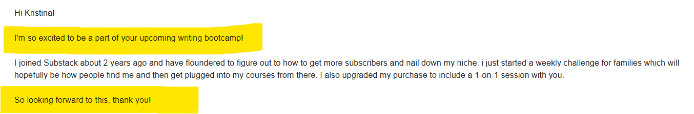 This year’s Substack Kickstarter Bootcamp is for action takers like this one (thanks, you know who you are!):