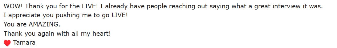 Start simple. Expand later. For Tamara this means she’s slwoly building her newsletter of long form essayas and her community through lives, chat and comments. She’s also getting lots of emails and DMs as it’s a sentitive topic.