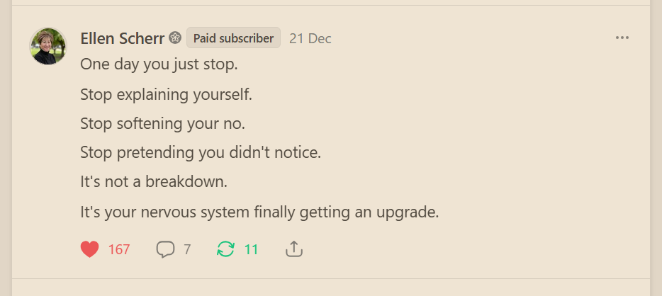 Ellen didn’t plan for her post Aging Out of Fucks: The Neuroscience of Why You Suddenly Can’t Pretend Anymore to go viral.