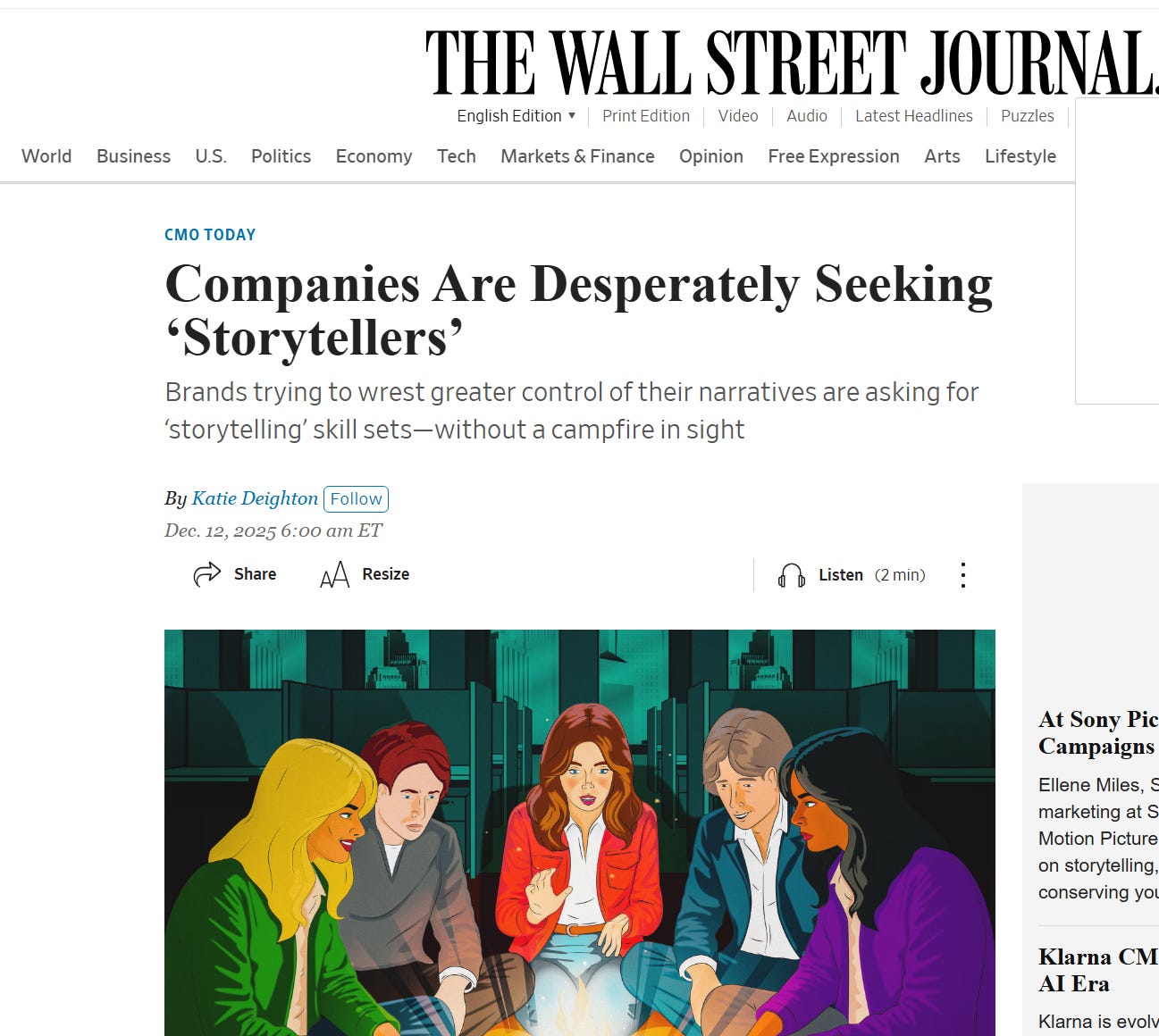 Even the The Wall Street Journal is saying story weavers are wanted.