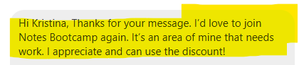 And that’s the energy I want to bring into this next year’s Notes Bootcamp…