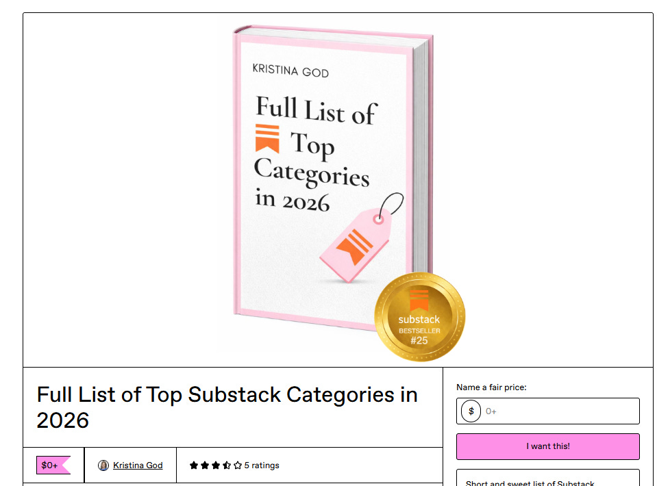 When I asked Substack and their product team if they had a list of the most popular Substack categories (to spot what’s most and least competitive), they told me that list isn’t shared publicly.