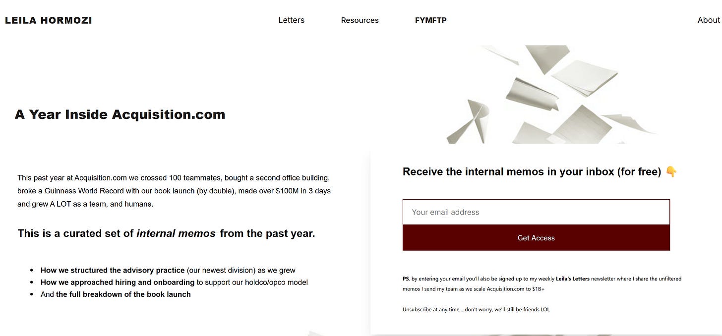 Leila Hormozi’s “newsletter” that’s not adding more to her plate