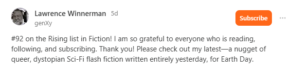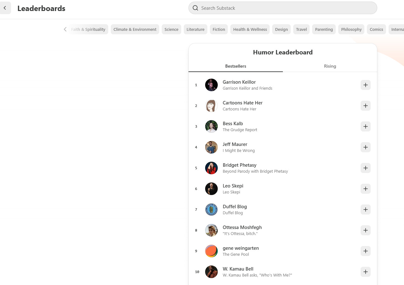 Rising: Shows the fastest-growing publications in each category - based on paid subscription growth. This is perfect for newer and emerging writers starting to make waves who are not yet on the top bestsellers page.