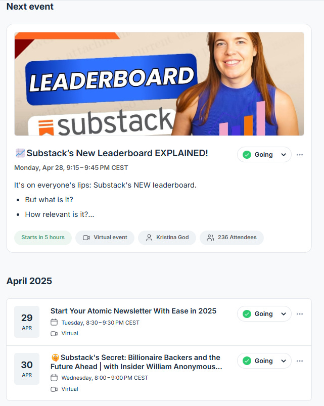 Many of you asked me about Substack’s NEW leaderboard and based on public demand I’m offering a masterclass today at 3.15pm EST on this new (nerve-wrecking) “tool”.