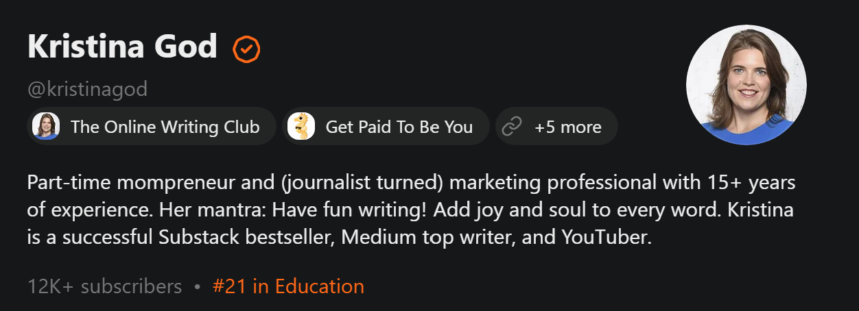In fact, in our tribe, we have incredible writers rising across so many different areas — parenting, education, tech, philosophy, and more. I showed you some. There are many more smallstacker and midstackers (with a teeny tiny audience or growing audience) …
