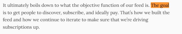 “The goal is to get people to discover, subscribe, and ideally pay. That’s how we built the feed.”