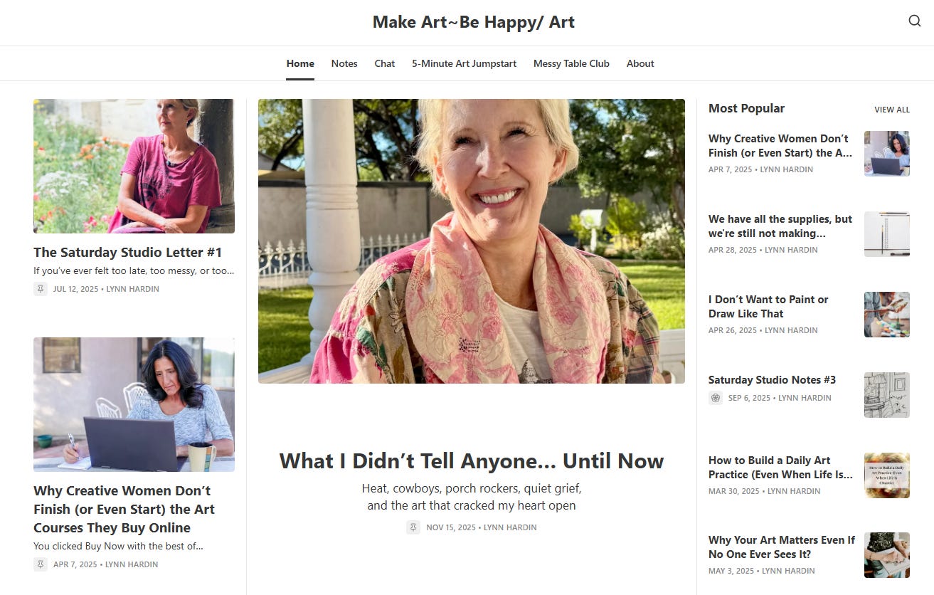 ⭐And then there’s Jerry Keszka. He transformed his whole 50plus life (ex-scientist, fashion aficionado, blogger) and is now helping building an online business. He’ll show you how to build your LOVELY online home that is Substack, as guest author and artist Lynn did so beautifully for herself.