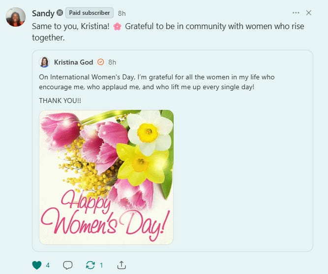 If you are a woman inside the Club creating a newsletter you are proud of… Don’t stay quiet today. I want to see what you’re building. And I want to celebrate the incredible women inside this community.