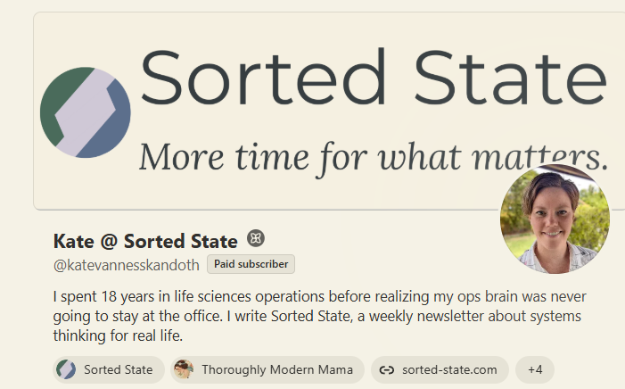 Sorted State is a weekly newsletter where I write about what it’s like to see the world through an operations lens, and what happens when you apply that lens to the beautifully chaotic, deeply imperfect project of running a home, raising a family, and building a life you actually enjoy.