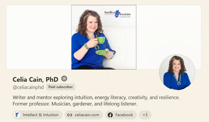 Writer and mentor exploring intuition, energy literacy, creativity, and resilience. Former professor. Musician, gardener, and lifelong listener.
