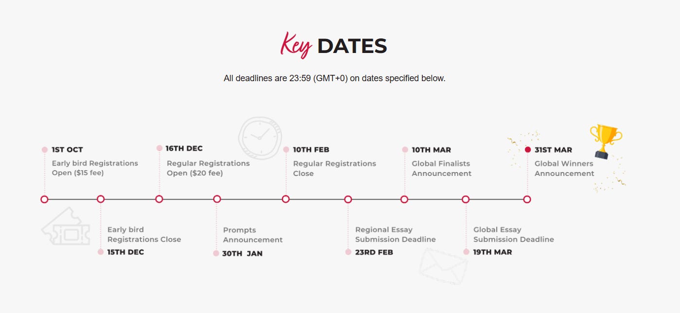 Compete in the regional round (the top 10 essays per category and region are invited to participate in the global finals)