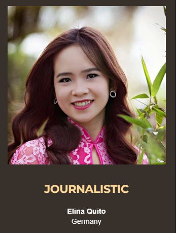 Elina is from Germany. She’s a student. And she wrote clearly, boldly. As herself. That’s why it worked.